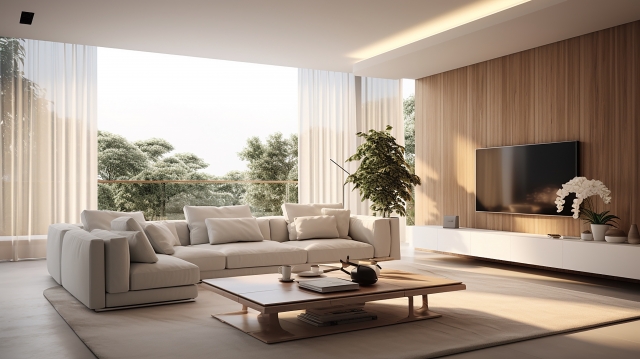 ホテルライクなリビングをつくるには、空間を広くすることがポイントです。しかし、住宅の面積は限られており、他の間取りに影響が出てしまうので広くできないケースもあるでしょう。そのようなときは、リビングの天井を高くして開放感を生み出すことが有効な方法となります。天井が高いと空間の圧迫感を軽減でき、リビング全体を広く感じることができるので、リビングの広さが十分に確保できない場合でも、天井高によってホテルライクな空間を実現できるポイントとなります。また、天井を高くできると照明器具も工夫しやすくなります。例えば、シャンデリアや吊り下げ式の照明も、天井の高い空間だからこそ取り入れることが可能です。