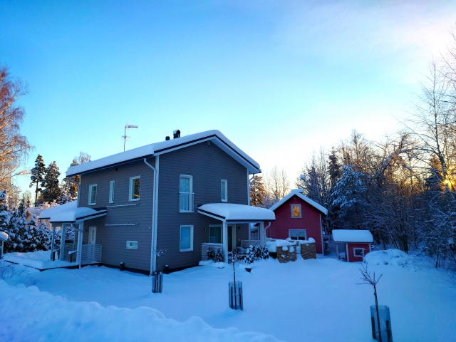 北欧住宅の大きな特徴となる三角型の大屋根。北欧は雪が降る地域なので、屋根に雪が積もらないよう三角形になっているのが特徴です。その他、軒を深くして雨水の侵入を防ぐといった工夫がされています。日本では、三角屋根だけでなく四角いキューブ型にするケースも多いので、好みに合わせて選択するのも良いでしょう。