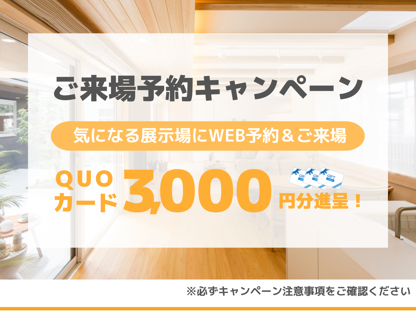 こちらの申し込みボタンから展示場へ来場予約をすると最大3,000円分のQUOカードプレゼント!