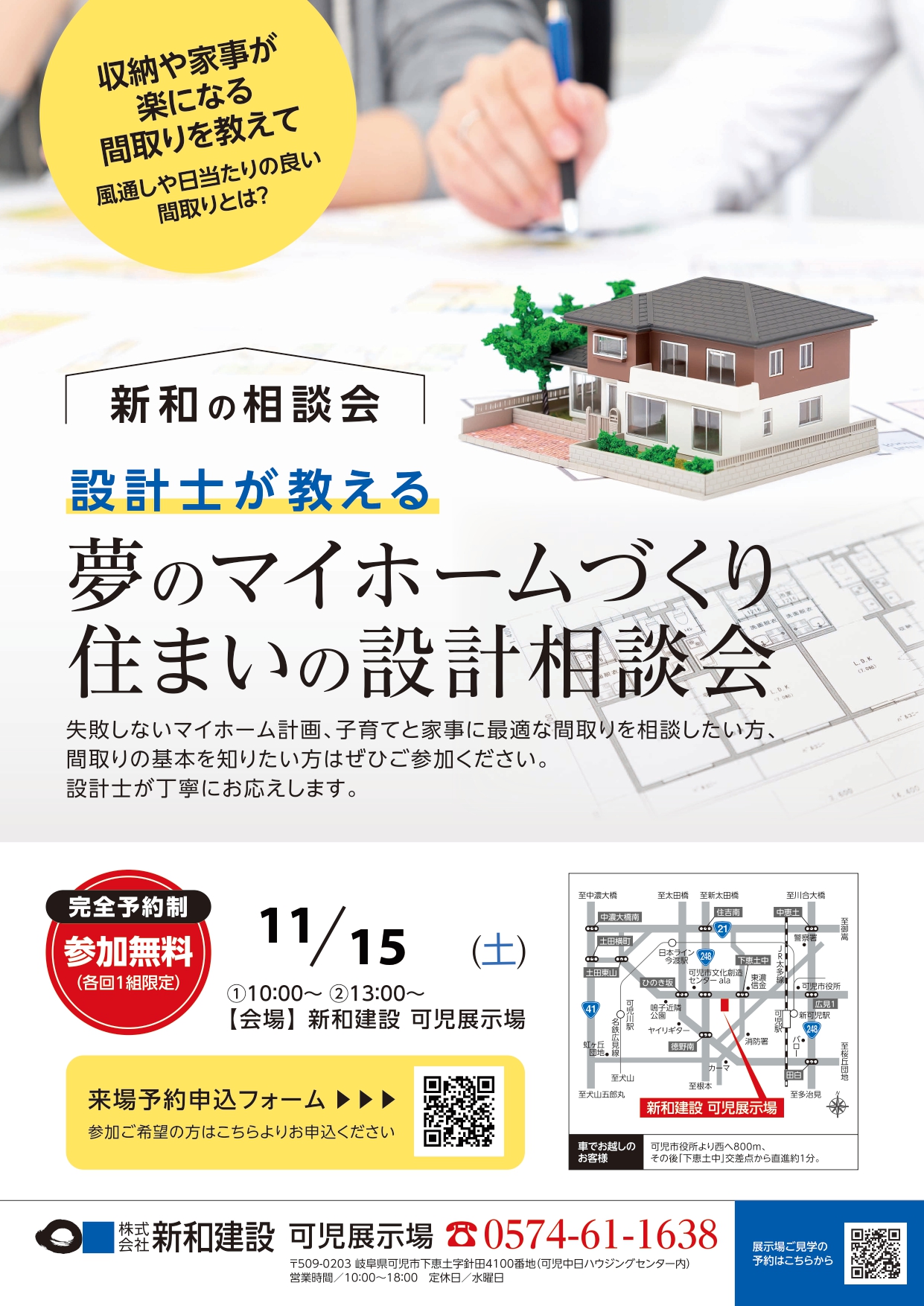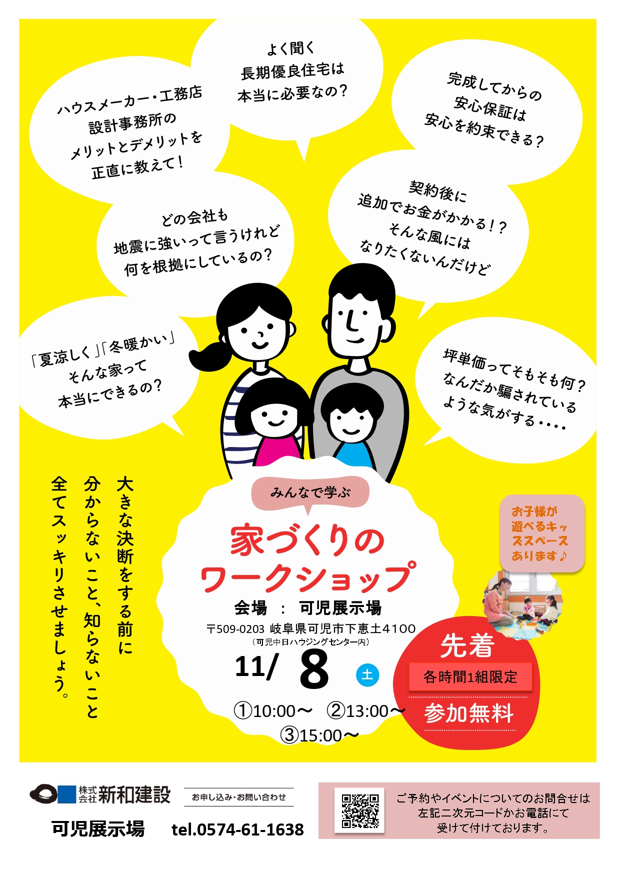 お申込み :新和建設 可児展示場(0574-61-1638)または下記イベント予約フォームへ