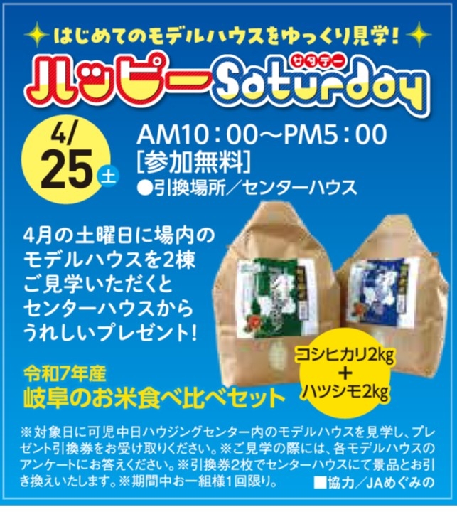 4/25(土) はじめてのモデルハウスをゆっくり見学! ハッピーSaturday