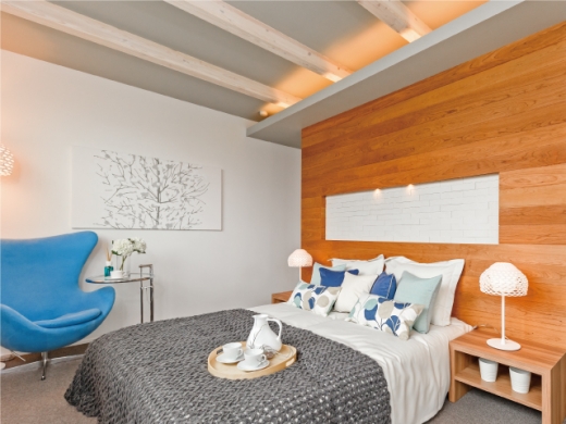 間接照明で映える主寝室。ホテルライクな空間は、WICを隣接させて機能性もしっかりと確保しています。