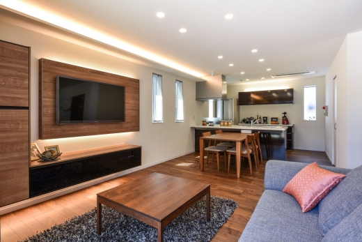 2世帯住宅の親世帯スペースを1階に設けています。16帖あるゆとりのLDKは「寛ぐ」という言葉にふさわしい空間です。和室を隣接することも可能で、家族やご近所のお友達とのコミュニケーションも育めます。