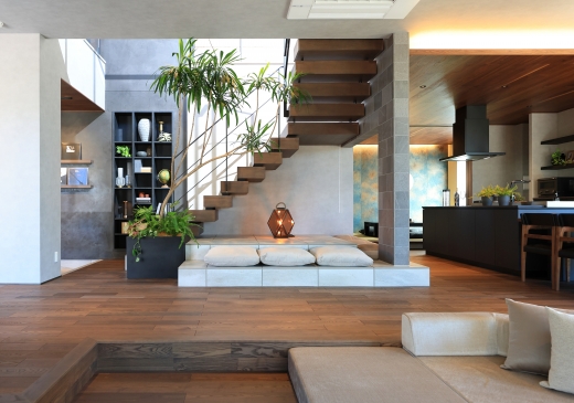 大地に抱かれるような心地よさを感じるロースタイルリビング。