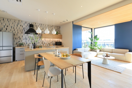 光と開放感、外に広がり空とつながるナチュラルモダンなLDK。