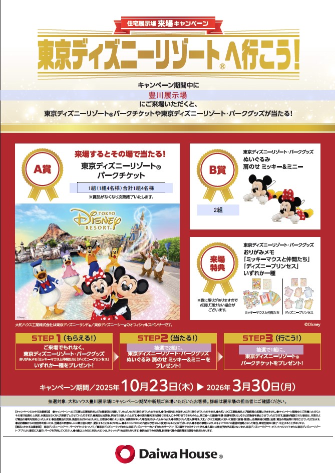 キャンペーン期間中に大和ハウス豊川展示場にご来場していただくと