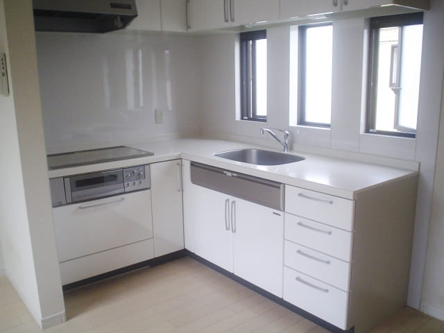 L型はLの字のようになったキッチンレイアウトのことで、作業スペースを広く確保できることが最大のメリット。