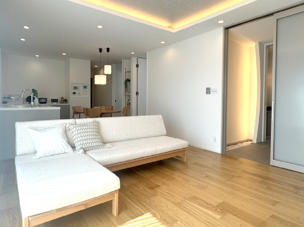 リビングを通らず洗面所へ直接アクセスできる「ただいま動線」で清潔に。