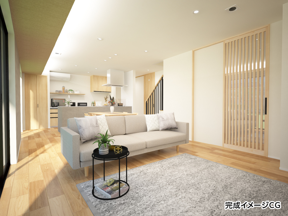 リビング・ダイニングを一望できるアイランドキッチンやリビング階段など、