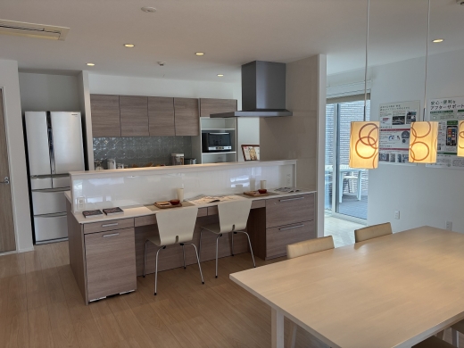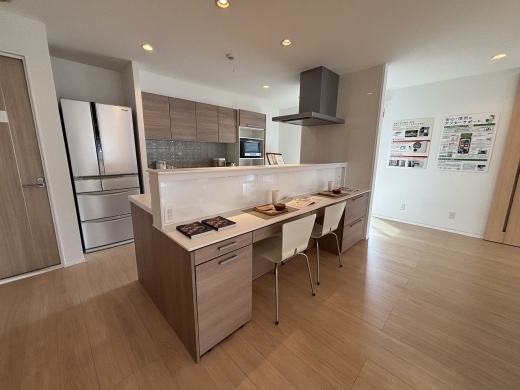 システムキッチンは、LDKを彩る需要なアイテム。キッズカウンターキッチンは、機能性はもちろん、デザイン性も重視した一条オリジナルキッチンです。広いカウンタートップやIHなど、毎日のお料理をサポートする設備が盛りだくさん!キッチンと同じカラーリングでまとめたカップボードは、木目調仕上げとなっており、キッチンスペースを優しくコーディネートすることができます。